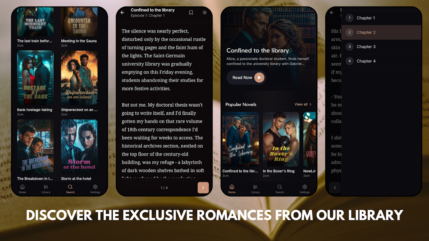 A selection of captivating romances to read directly on your mobile. Dive into passionate stories where love, mystery and emotion meet.