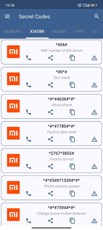 You can search any function in the application and you can execute any secret code by using dial button. Also, you can share the secret codes in social media easily.