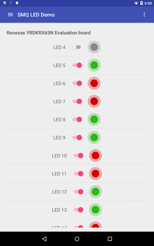 The SMQ LED Demo shows how to design a cloud based IoT solution for controlling LEDs in devices connected to an SMQ broker. The demo uses the SMQ protocol and enables Android clients to control all LEDs in each connected device.