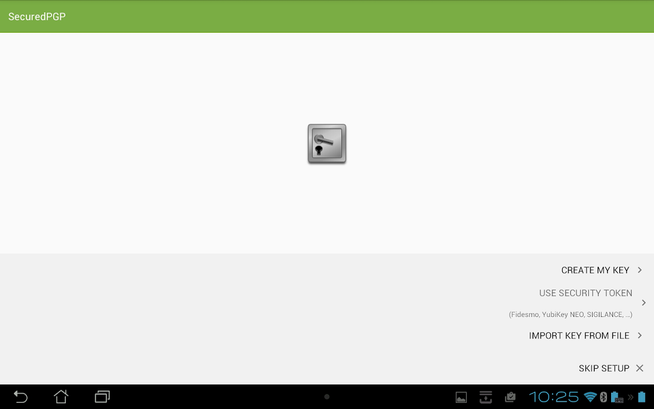 This app is configured to provides a proven implementation of the military/security/intelligence grade encryption (AES-256) for our SecuredEmail app. User should be familiar with PGP (also OpenPGP) and the concept of public and private keys, and how they work. User should also know how to exchange the public key securely with contacts. It recommended to generate at least one key which can encrypt, decrypt, and sign.