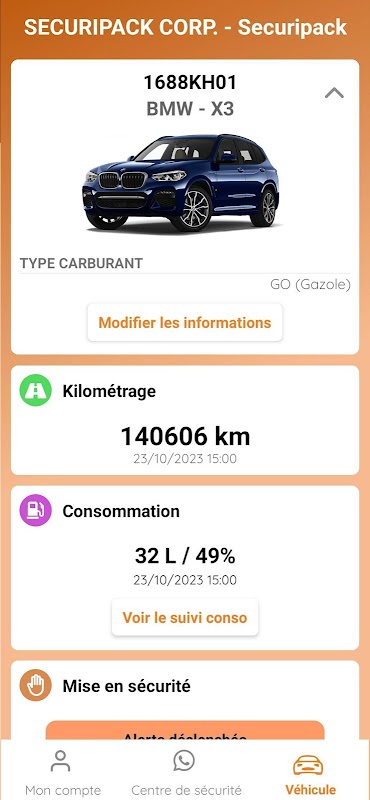 - Maintenance: be notified in advance of upcoming maintenance deadlines. The app gives you the mileage of your vehicle and the fuel level* in real time (*with a CAN box)