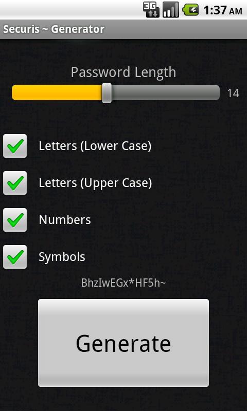 - Can generate passwords from 4 - 26 characters, using letters. numbers, and symbols.