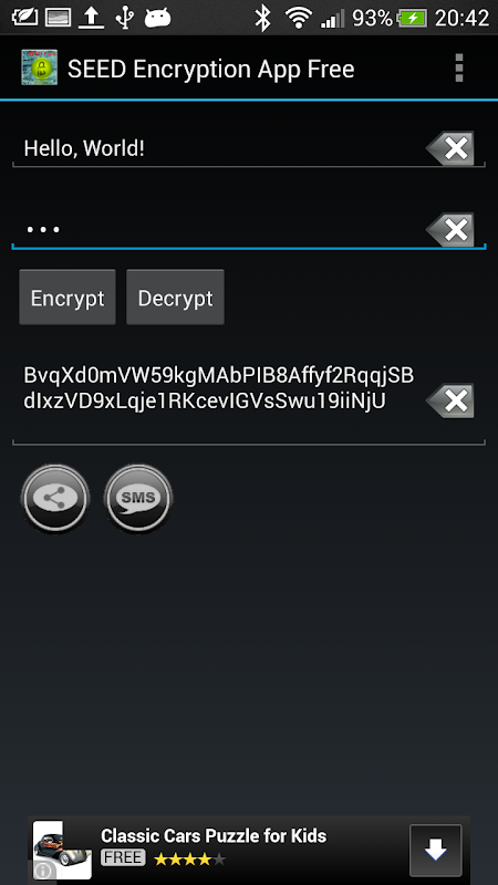 With this app you can encrypt or decrypt your text with cryptographically strong cipher SEED.