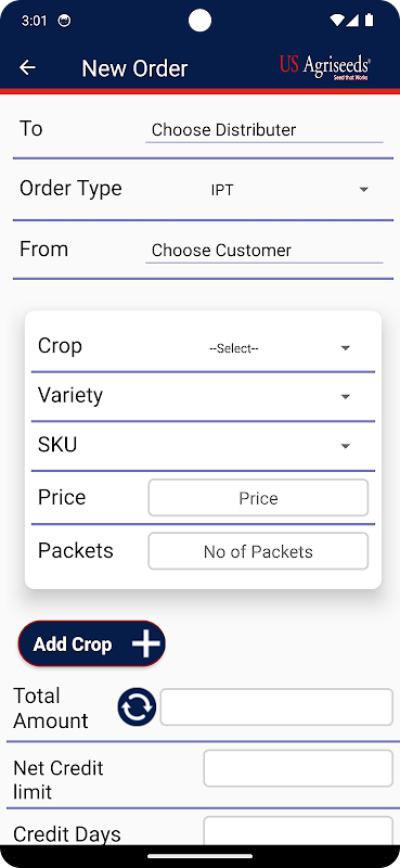 A unique application for SeedWorks USAgriseeds Distributors and Sales personnels to online place the order for Product & Services of SeedWorks. The fastest and easiest method to order Hybrid Seeds of USAgriseeds brand.