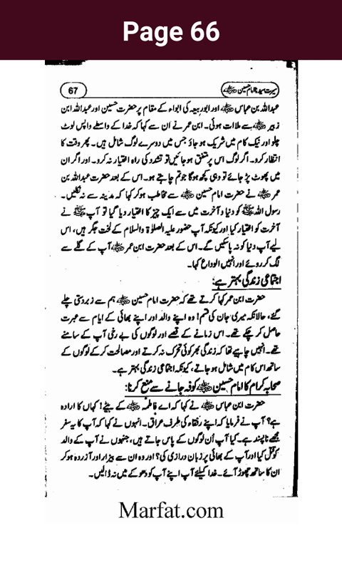 Hazrat Imam Hussain was a grandson of the Islamic prophet, Muhammad, and son of Ali ibn Abi Talib (the first Shia Imam and the fourth Rashid caliph of Sunni Islam), and Muhammad's daughter, Fatimah. He is an important figure in Islam as well as being the third Shia Imam.This book is the complete guide on the life of Hazrat Imam Hussain. Read this book and you will know the Seerat and Life of Hazrat Imam Hussain. This book Contains the complete story of Karbala. So please read this book.