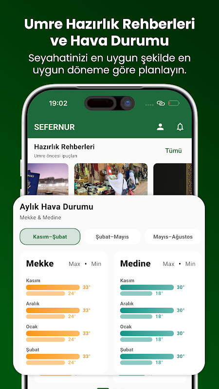 📅 Monthly Weather Forecast & Umrah Preparation Guides – Plan your trip according to the most convenient time.