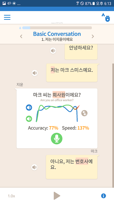 - For main sentences from each chapter, you can compare your pronunciation to the audio clips to learn new vocabulary.