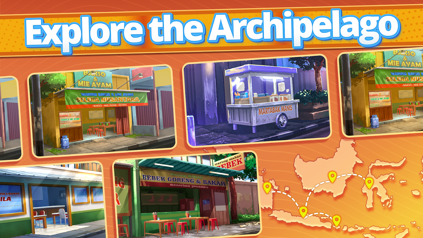 ♦ Unlock new stalls & restaurants and experience authentic Indonesian restaurants and recipes 🌮
