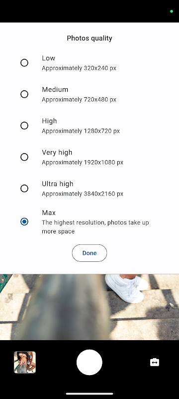 Camera has all needed features to take the perfect selfie: autofocus, configuration of photos interval in seconds and minutes, lock of screen sleep when camera is active, maximum image quality, disable or enable shutter sound, you can switch between all camera lens direction (for example between back and front cameras), flash mode.