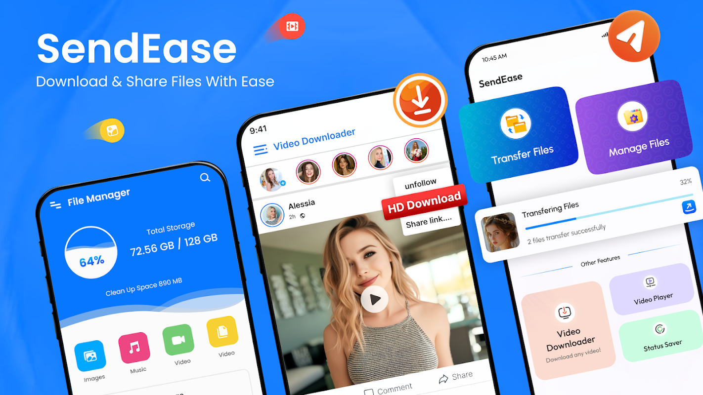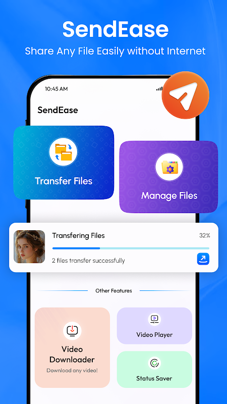 Send Ease lets you share files quickly and easily. Whether it's photos, videos, music, apps, or documents, transferring files between devices is simple and smooth.