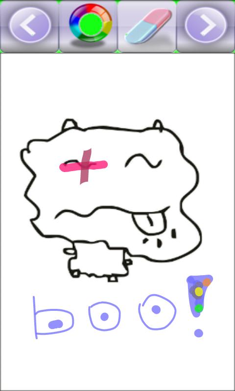 When you press the "Save" button, your drawing is stored on SD-card. In common case your creation will be presented immediately on image gallery under a folder named "FunnyDotsPics".