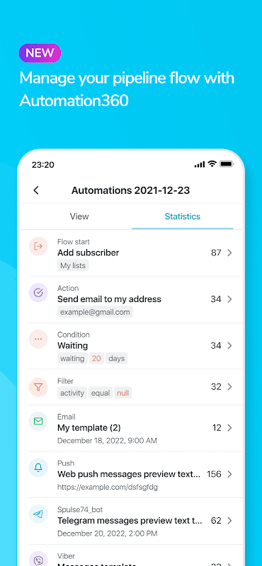 The SendPulse app allows you to add subscribers to your lists, send email campaigns, and view detailed reports and analytics. You can create a campaign on your desktop and send it later from your phone or tablet.