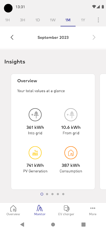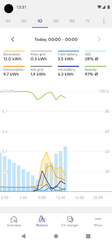 In Your Statistics you will get even more information about Your SENEC by means of charts of the measures in a joint representation for days, weeks, months and years.