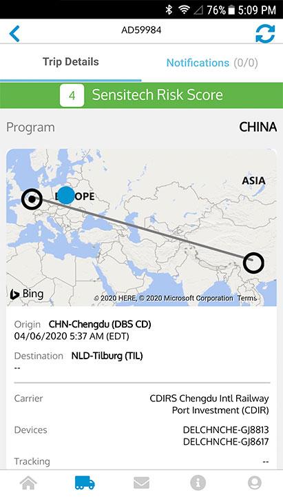 • Access shipment status based on milestones, location, environmental conditions and risk events