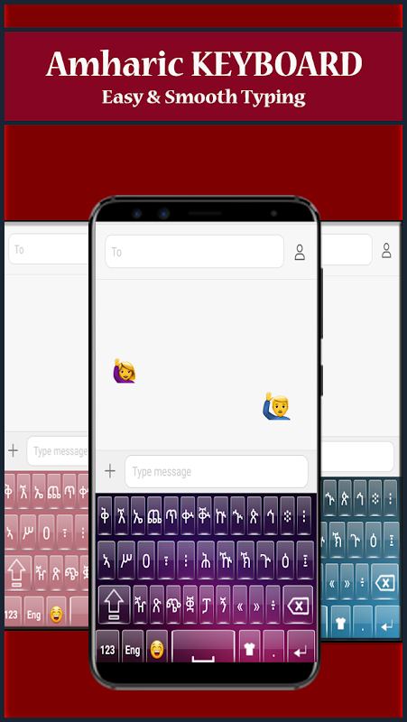 Amharic typing keyboard with smiley emojis and stylish themes the orderly placement of English as well as Amharic writing keyboard alphabets helps you to- type letters in Amharic language input, important messages in Amharic. Amharic language keyboard with English and emoji making of English Amharic documents, write interesting stories in Amharic language and communicate with friends.
