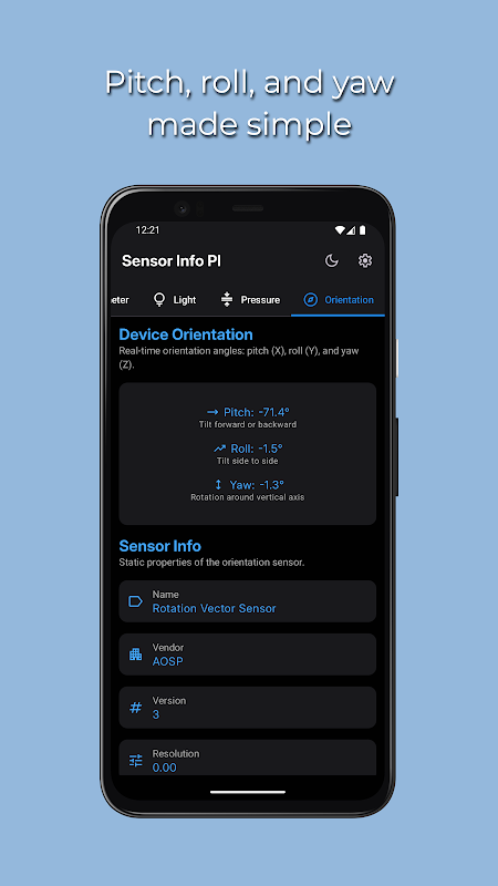With Sensor Info PI, you can instantly see how your device is reacting, whether it's being tilted, rotated, exposed to light, or sensing magnetic changes.