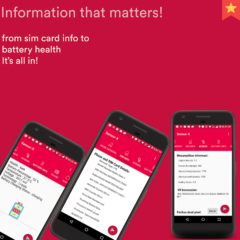 Sensor Tester || TEST , DIAGNOSE YOUR DEVICE !! fetches out your device's model number, IMEI number and there is no need to look all details again in different places .Everything you want is here!