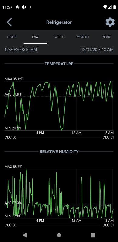 In addition to the elegant current conditions and time series displays, the distribution views give you instant insight into what temperature and humidity levels are most prevalent in a location and what the extremes were for the previous hour, day, week, month, or year.