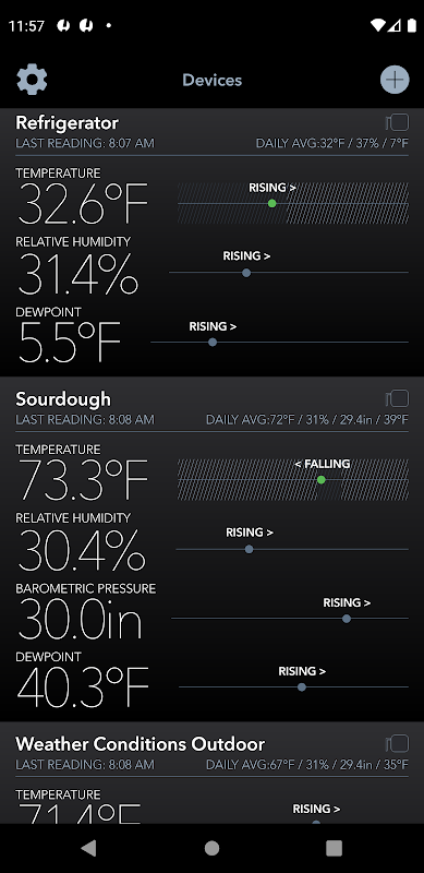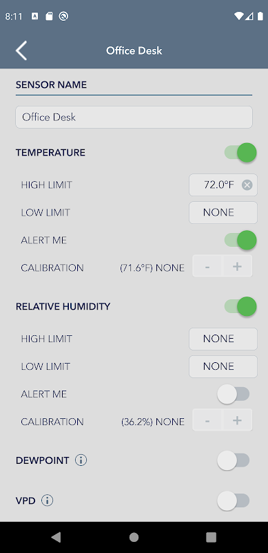 With the drag of a slider you can set the optimal range for any situation, whether it's a greenhouse or your guitar. Then when your Android device is within range of the sensor (300+ feet line of sight), it will be continuously monitoring conditions.