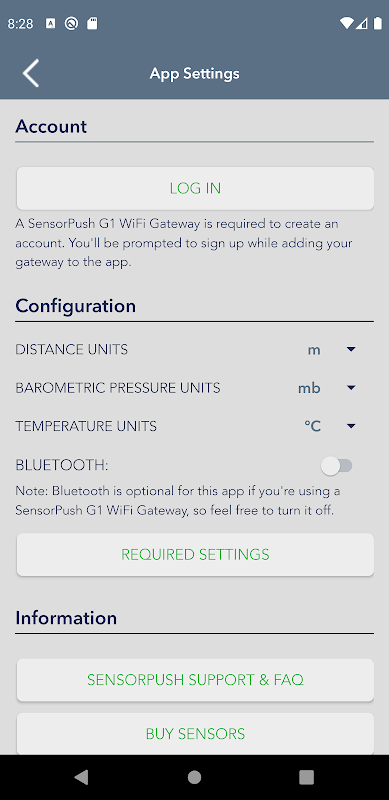SensorPush is the easiest way to monitor the environmental conditions affecting the things you care about. Quickly pair the app with our Humidity & Temperature Smart Sensors (available at http://www.sensorpush.com/buy) and enjoy the sleek interface for viewing current and past conditions. Add the SensorPush G1 WiFi Gateway for easy access to your data from anywhere, using our included cloud service.
