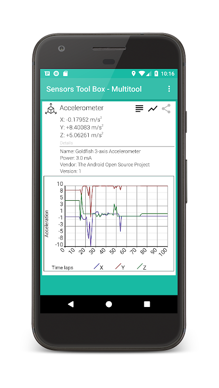 Sensors toolbox - multi tool makes the most of all the sensors in your smartphone. With a user friendly interface and easy to read layout, Sensor Toolbox allows you to collect data in real time for any and all sensors on your phone. Convert the data into easy to read graphs with a detailed readout from each sensor.
