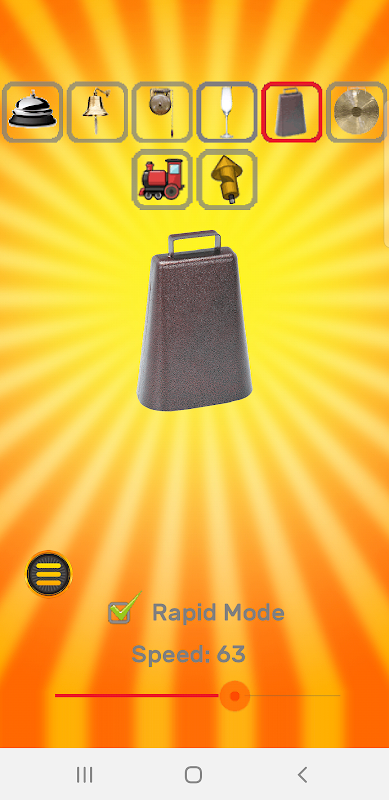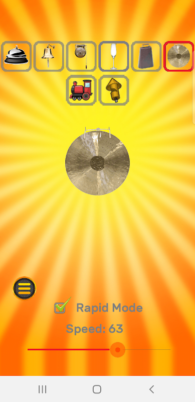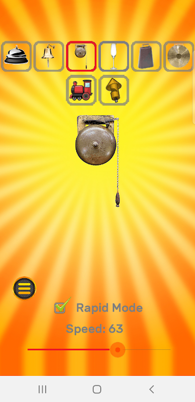 - "Rapid Mode" - allows the bell sound to repeat as long as the bell image is pressed. Use the Speed slider to control how fast the sounds repeat.