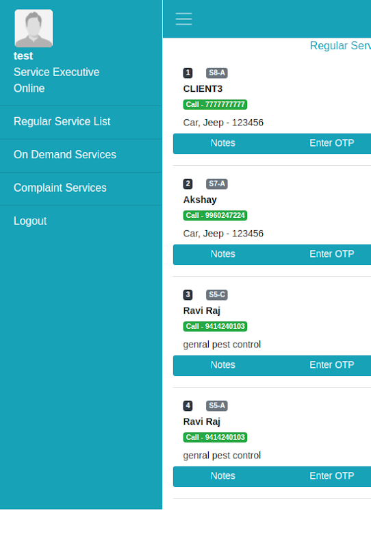 service manage application for service boy or service engg. where service boy can see all assign service .