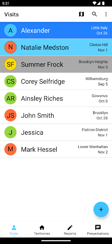 • Highlight the visits you want to do today (or in another date) in the list and on the map