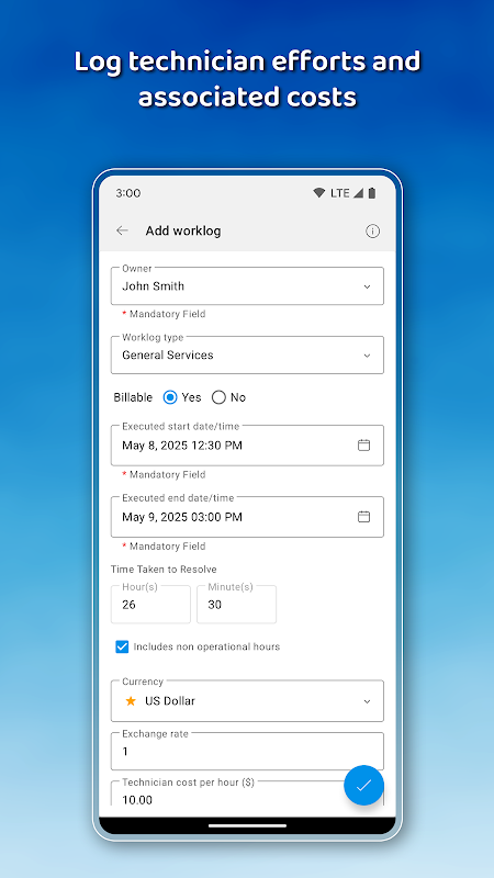 - Track technician efforts: Track time spent by adding worklogs.