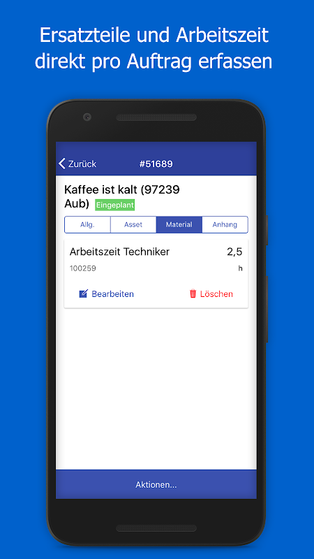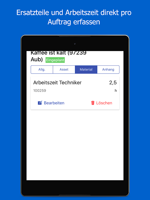 Direkt vor Ort beim Kunden Zeiten und Material erfassen und als PDF dem Kunden schicken.