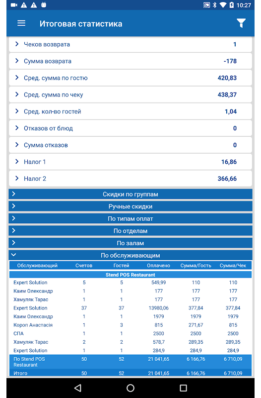 SERVIO Mobile Statistic will be useful for owners of hospitality enterprises, administrators and those who want to keep abreast of their business.