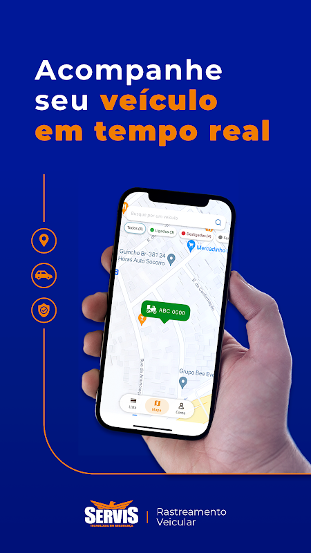 The Group Servis was created to give mobility to the product Servis Electronics, showing the vehicles tracked by the system.