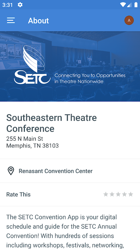 The SETC Convention App is your digital schedule and guide for the SETC Annual Convention! With hundreds of sessions including workshops, festivals, networking, and more, the SETC Annual Convention is a one-stop-shop opportunity to connect with companies, recruiters, and other like-minded theatre practitioners! Whether you are a professional or an emerging artist, we are here to help you grow your career and connect you with the industry! Use the SETC app to plan your convention experience, scope out workshops and events that interest you, and navigate the convention center.