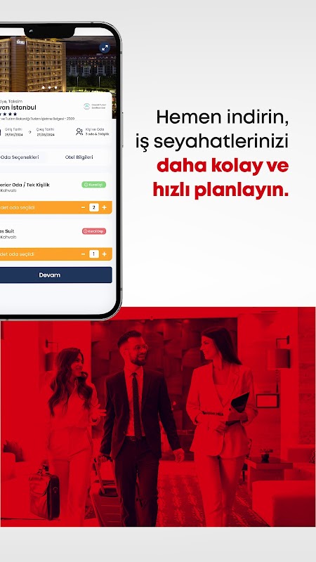 With the Seturbiz travel application, you can easily plan the domestic hotel, international hotel and flight ticket reservations you need for your company's business trips. You can save money on your travel while performing all transactions related to your business trip through the application.
