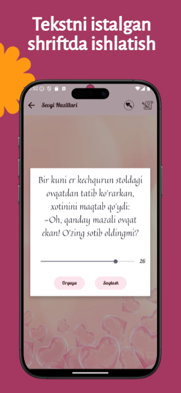 His-tuyg'ularingizni so'zlar bilan ifoda eting! Ilovani hoziroq yuklab oling va qalbingizni o'rtoqlashing. ❤️