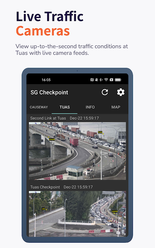 SG Checkpoint is a simple app to check traffic information at Tuas and Causeway.