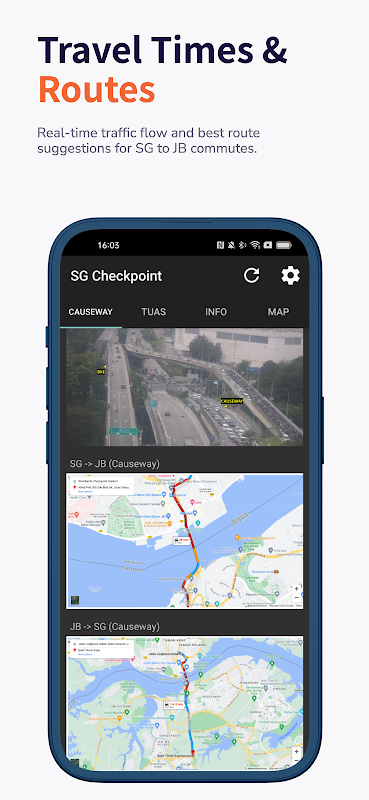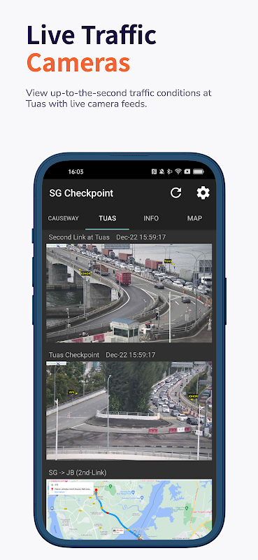 A simple app to check the traffic load and traffic camera at Tuas, Causeway.