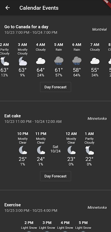 Shadow Weather syncs with your phone's calendar so you can know the forecast for upcoming events easily.