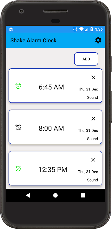 Tired of pressing the power button/swiping the screen every time an alarm rings? No worries! With this app, you can simply shake your phone and dismiss the alarm.