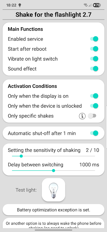 Turn on your flashlight by shaking your phone – fast, simple, ad-free
