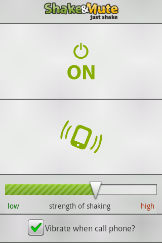Shake&Mute - is an application that allows you to disable the phone ring during an incoming call, simply shake or slap. You can shake the bag, which contains the phone or slam on the pocket. Sensor sensitivity adjustable by calibration.