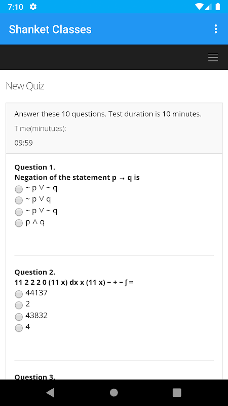 Application exclusive from Shanket classes, student can register and take quiz from this.