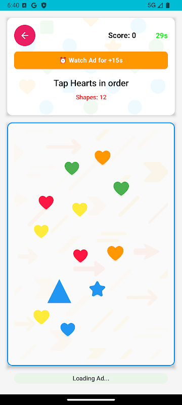 - Shape: tap by shape (Squares, Triangles, Circles, Stars, Hearts).
