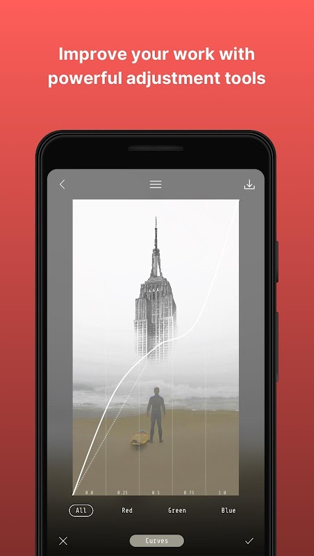 However, a plenty of features have been added in this version, which turn Shapical X into a complete all-in-one photo editor. There is an opportunity not only to add lines and shapes, but also to add graphic patterns, mix photos with photos, add complex graphic dynamic objects, including gradients in the baugasm style, as well as pixelation effects, smudge, glitch, noise, vhs. Now Shapical X allows to use double exposure, blending, photo collages, and a large number of color correction settings, such as color curves, Contrast, Shadows, Highlights, Exposure, Warmth, Brightness, Sharpen, Fade and Layers opacity.