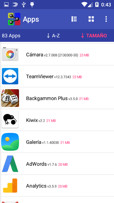 - Share your applications by bluetooth, email, etc.