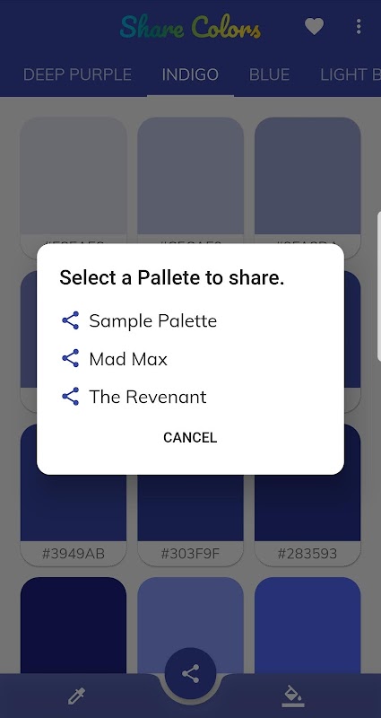 Create color palettes, save them on your device, and share to your friends...
