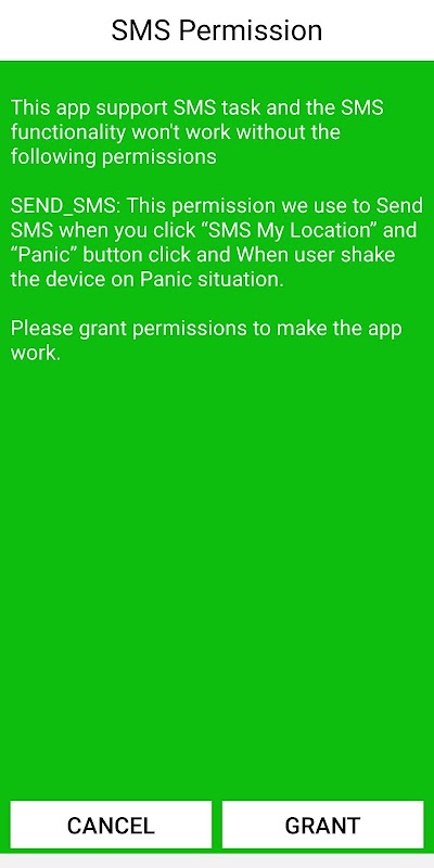 SEND_SMS: This permission we use to Send SMS when you click “SMS My Location” and “Panic” button click and When user shakes the device on Panic situation.