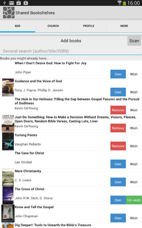 See what Christian books other members of your church family own and have on their wishlist so you can lend and borrow them. This app makes it easy to create an inter-church virtual library.