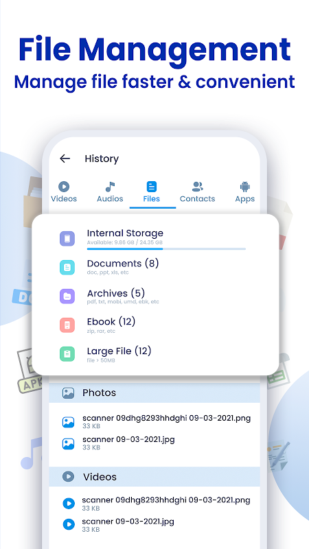 All transmission history and received files are listed scientifically in one place, you can easily check and manage at any time