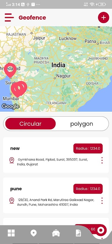This app helps to live tracking of vehicles and can see tracking history along with speed , distance covered and idle time of vehicle .User can set Geofencing of area and will be notified every time he/she leaves or enter geofence , if the speed exceeds more than 80 user will be notified for the same.